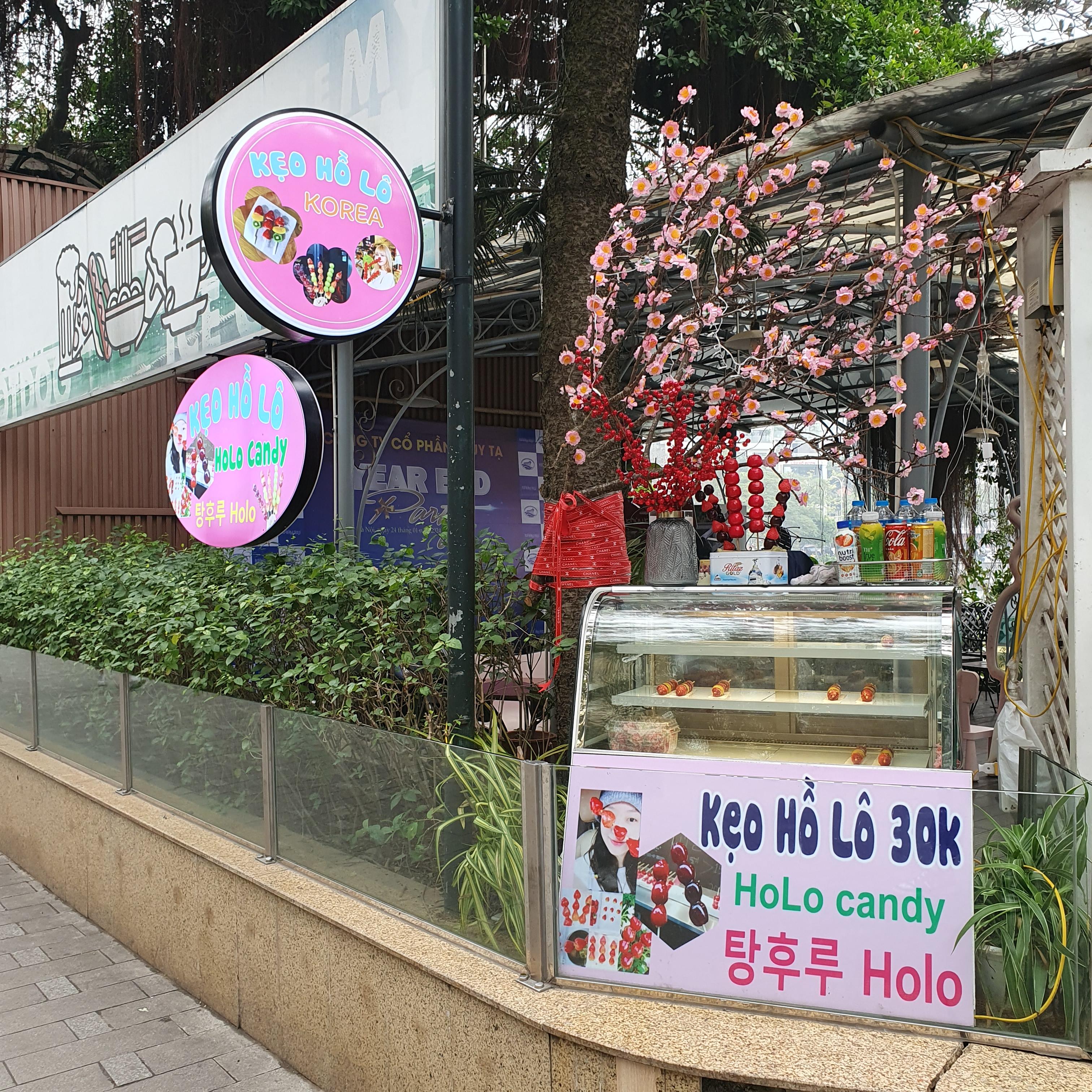 중간에는 한글 간판에 한국음악을 틀어놓고 탕후루를 팔고있는 가게가 있었다.