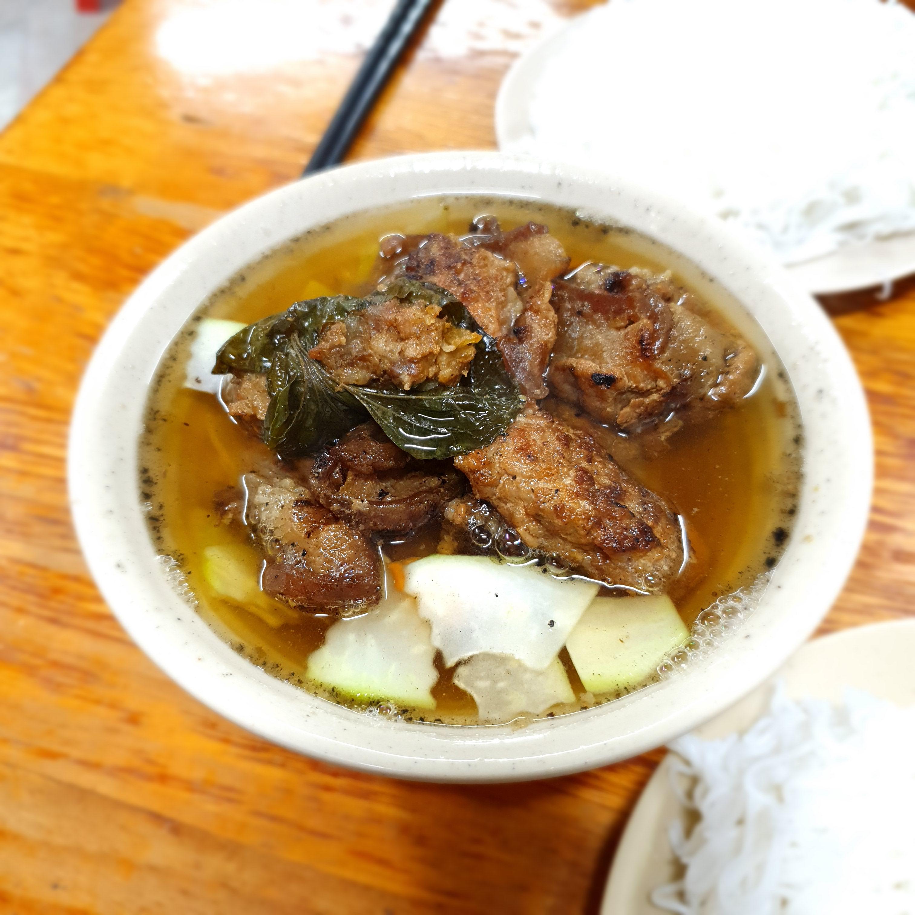 Bun Cha는 숯불에 구운 돼지고기가 담긴 느억맘소스에 가는 쌀국수를 담가먹는 음식인데, 정확히 돼지갈비 맛이 났다.
